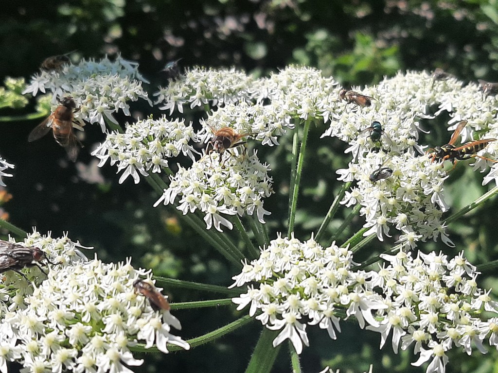 Ich habe heute auf der Blüte vom Wiesenbärenklau, der in meiner Auffahrt wächst, sechs oder sieben verschiedene Insektenarten entdeckt, und das waren mit Sicherheit nur die, die ich spontan auf einen Blick gesehen habe…