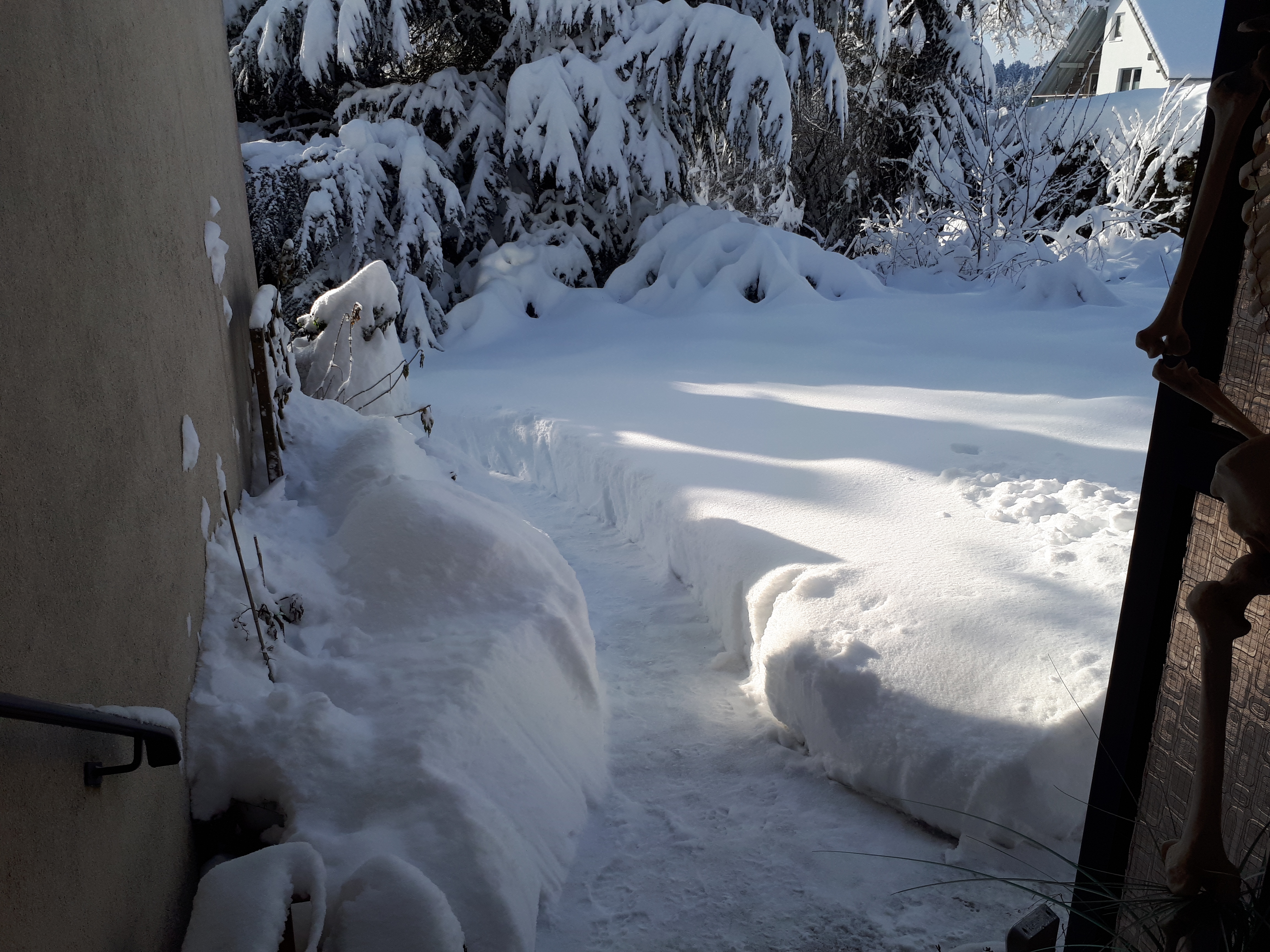 Wenn man sich draußen in der Natur aufmerksam umsieht, kann man wahre Wunderwerke entdecken – so wie die perfekte Symmetrie einer Schneeflocke oder eines Eiskristalls. Und mal ehrlich – so ein freigeschipptes Wegesystem durch tiefen Schnee hat einfach mal was…. 😉