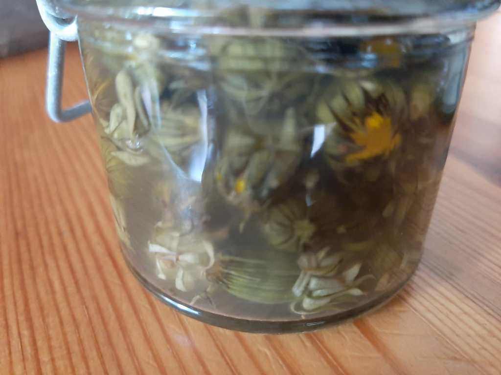 - so viele geschlossene Löwenzahnknospen wie Du möchtest, für ein kleines Glas brauchst Du etwa eine Handvoll