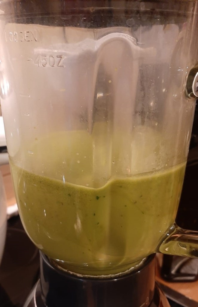 Nicht wundern, das Gemisch hat vor dem Abfiltern eher die Konsistenz von dünnem Brei… 😉