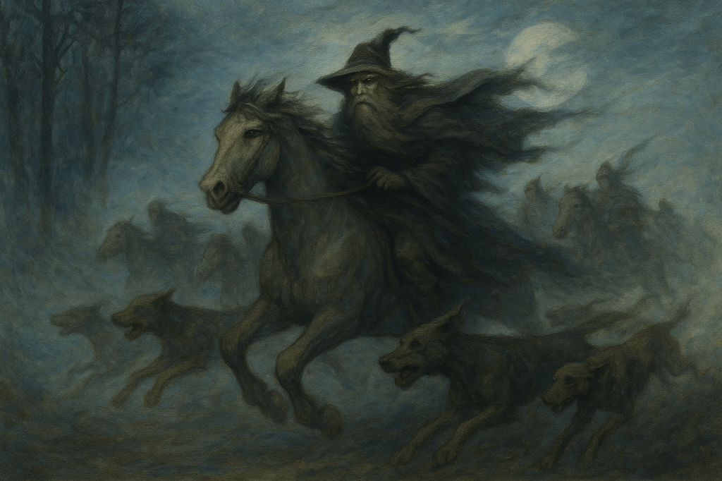 Die Wilde Jagd: Die Wilde Jagd ist eine alte europäische Vorstellung aus der Zeit, als Menschen Natur, Jahreszeiten und innere Zustände noch enger miteinander verknüpften. Man erzählte sich von einem geisterhaften Zug, der in den dunklen Nächten des Jahres durch Himmel und Landschaft zieht – begleitet von Sturm, Lärm und Unruhe. In diesem Zug ritten Jäger, Hunde, Pferde, manchmal auch die Seelen der Verstorbenen oder andere Gestalten aus der Zwischenwelt, angeführt von Wotan, Frau Holle oder einem namenloser Jäger oder einer namenlosen Jägerin.