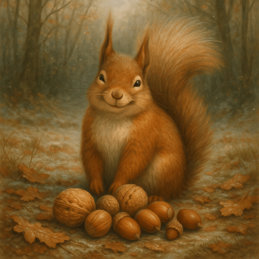 Woran ich überhaupt nicht gedacht hatte, ist der Eichhörnchen-Clan, der bei mir im Garten zu Hause ist. Diese putzigen Tierchen holen sich ihren Anteil vom Vogelfutter und, ja genau: die Eicheln aus meiner Dekoration. Da habe ich ihnen wohl unfreiwillig ein Festmahl serviert 😂 Und da sie das meiste von dem, was sie als Vorrat vergraben, nicht mehr wiederfinden…